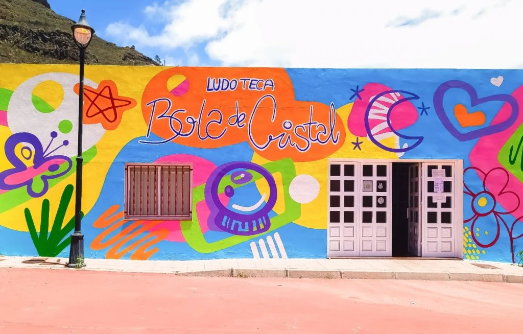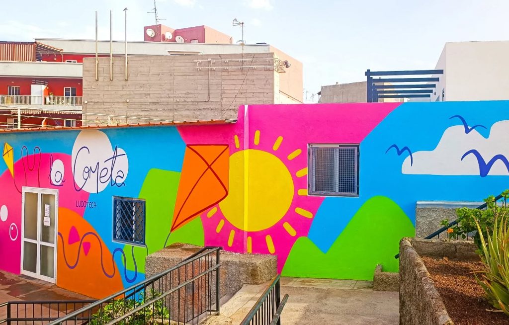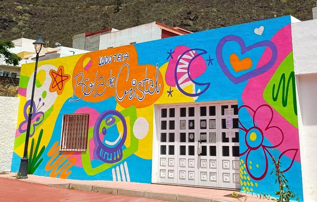 Decoración mural de las fachadas y exteriores de las Ludotecas de Tamaimo y Puerto Santiago. Ludoteca Bola de Cristal y Ludoteca La Cometa, respectivamente.