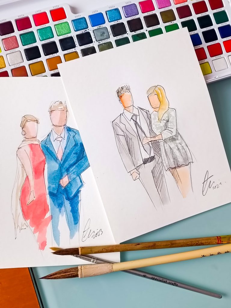 • Retratos rápidos en acuarela, para obsequiar a los invitados a una boda o celebración.